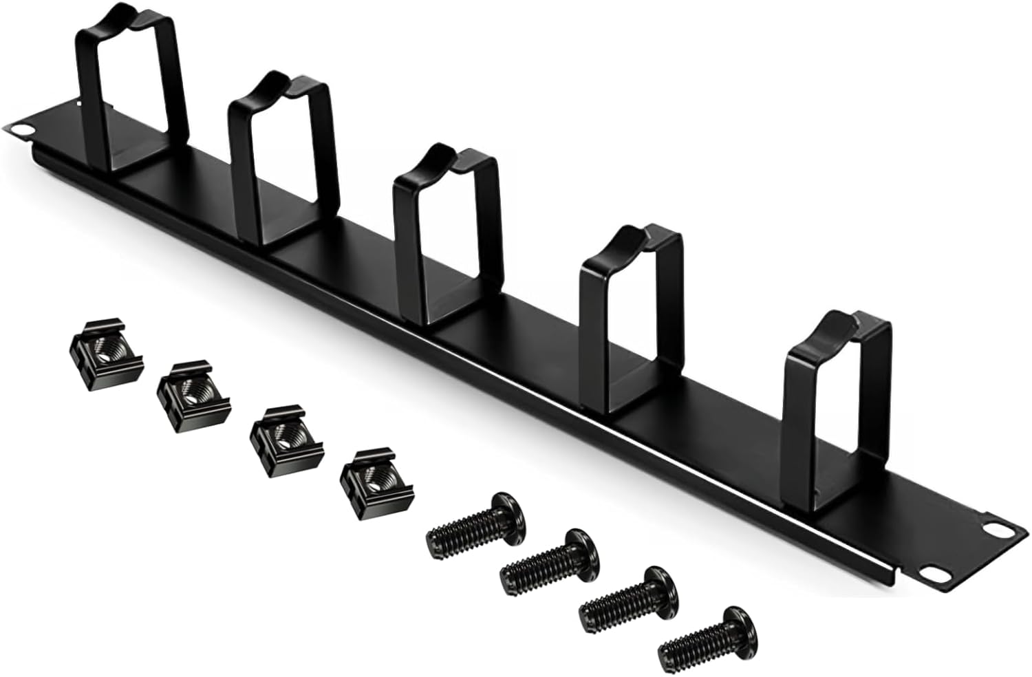 - El paquete incluye: 1 panel de gestión de cables de montaje en rack 1U horizontal de 19 pulgadas con 5 anillos en D de 3 pulgadas de profundidad